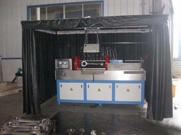 磁粉探傷機是利用鐵磁性材料被磁化后,由于不連續的存在,使工件表面和近表面的磁力線發生局部畸變而產生漏磁場吸附施加在工件表面的磁粉,形成在合適光照下目視可見的磁痕,從而顯示出不連續性的位置、形狀和大小。把探傷物進行磁化是很重要的。